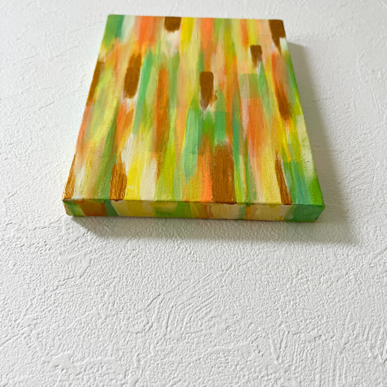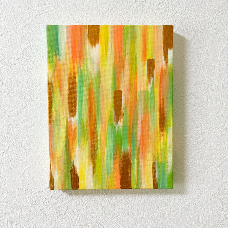 ミニキャンバス抽象画 3色シリーズ | 3-Color Small Abstract Canvas Art 0号サイズのミニ抽象画シリーズです。近くで見ると細かい塗り込みがあるので、小さいお部屋でも大きいお部屋で3つ飾っても楽しめます。差し色のゴールドや蛍光色がポイントなので、ぜひ近くでご覧ください。直置きもできますし、壁掛けもできます。壁面に飾るとき(シリーズの場合)は、写真の展示のやり方を参考にすると、おしゃれになりますよ。ぜひこちらからご覧ください。<カラフルミニキャンバスシリーズ>PinkYellowBlue その他の記事を読む 前の投稿Yukaのアートとは?好奇心に身を任せ、ポップカルチャーからファインアートまでチャレンジする日本人アーティスト 次の投稿【作品紹介】キュビズム神戸三部作「凪の記憶」| Japan,Kobe:Memory of a Calm sea おすすめ 【作品紹介】P4 テクスチャーアート「森羅万象」【ハイライン】| Shinrabanshou 2025年9月27日 【作品紹介】フレッシュで明るいオレンジ色のバラの花:A solitary, graceful rose 2025年6月10日 美しい曼荼羅(マンダラ)デザインTシャツ | Beautiful Mandala Design T-Shirt 2025年2月5日 タグ: アクリル画, インテリア, 手描きアート, 抽象画