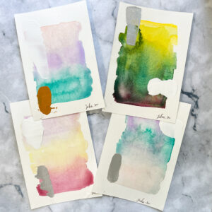 This is a postcard-sized abstract painting, featuring a variety of textures created with watercolor, baking soda paste, and acrylic paint. The colors blend in a delicate and captivating way. Each piece is a one-of-a-kind, hand-painted original—perfect to add to your collection. There are a total of six series available. Click on the images to visit the sales page. Please take a look and enjoy!